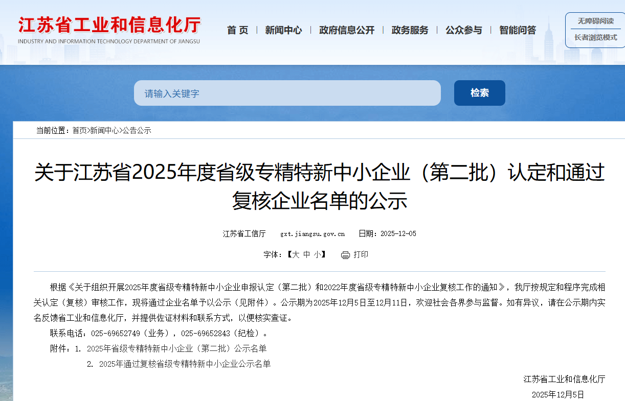 江蘇省工信廳公示2025年度省級專精特新中小企業(第二批)名單,江蘇先鋒綠色建筑...